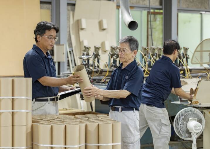 私たちは機械と人の手でモノづくりをしています。機械ではなく人の手でなければ完成しない製品も多くあるため、機械のオペレーション技術はもちろんのこと、紙の小さな変化にも気づける職人技が身に付きます。段ボールと紙管は 100 年以上前に誕生して今では多くの業界で使用されている欠かすことのできない製品です。