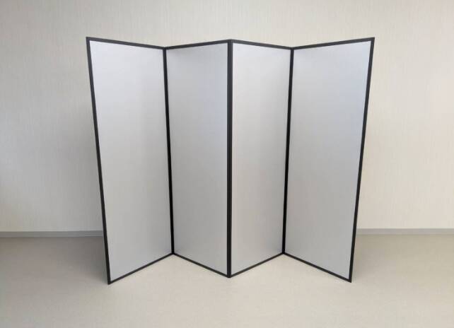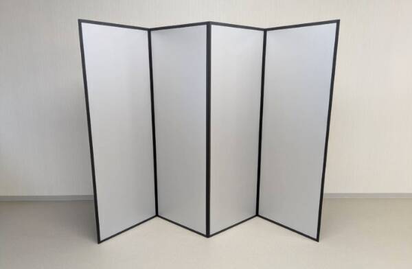 祭壇の背後に飾ったり、枕元や会館の間仕切りとしても使える多用途な屏風です。軽量で持ち運びやすく、折りたたみ式で設置・収納も簡単。